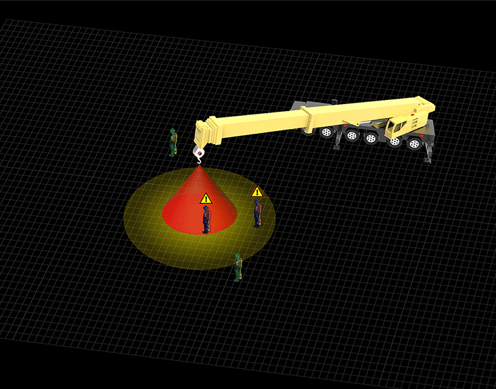 No matter what size mobile crane you have, seeing the danger zone under the hook block is imperative to keeping riggers safe. Mobile cranes present a challenge to visual alert systems since the danger zone moves with the hook block and mounting a good quality camera on a hook block is very challenging due to vibration and power issues. Our system takes advantage of the main boom collars for cameras. The camera focal area can be optimized to ensure the greatest danger zone area even as the boom telescoping sections move.